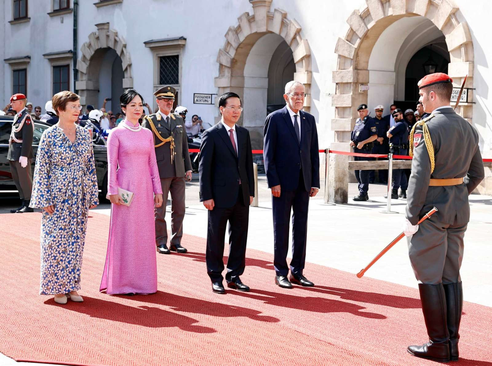 Vào lúc 10h30 sáng 24/7 giờ địa phương (chiều 24/7 giờ Việt Nam), lễ đón chính thức Chủ tịch nước Võ Văn Thưởng và phu nhân thăm chính thức Áo đã diễn ra trang trọng tại đại sảnh Cung điện Hofburg, thành phố Vienna, thủ đô nước Áo. Tổng thống Áo Alexander Van der Bellen và phu nhân chủ trì lễ đón.