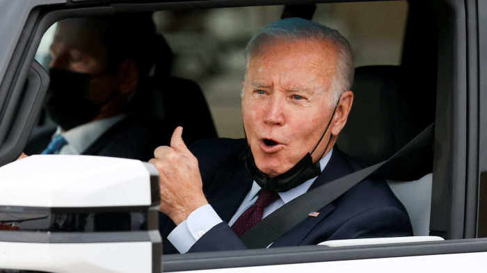Tổng thống Mỹ Joe Biden lái thử xe điện. Ảnh - The Hill