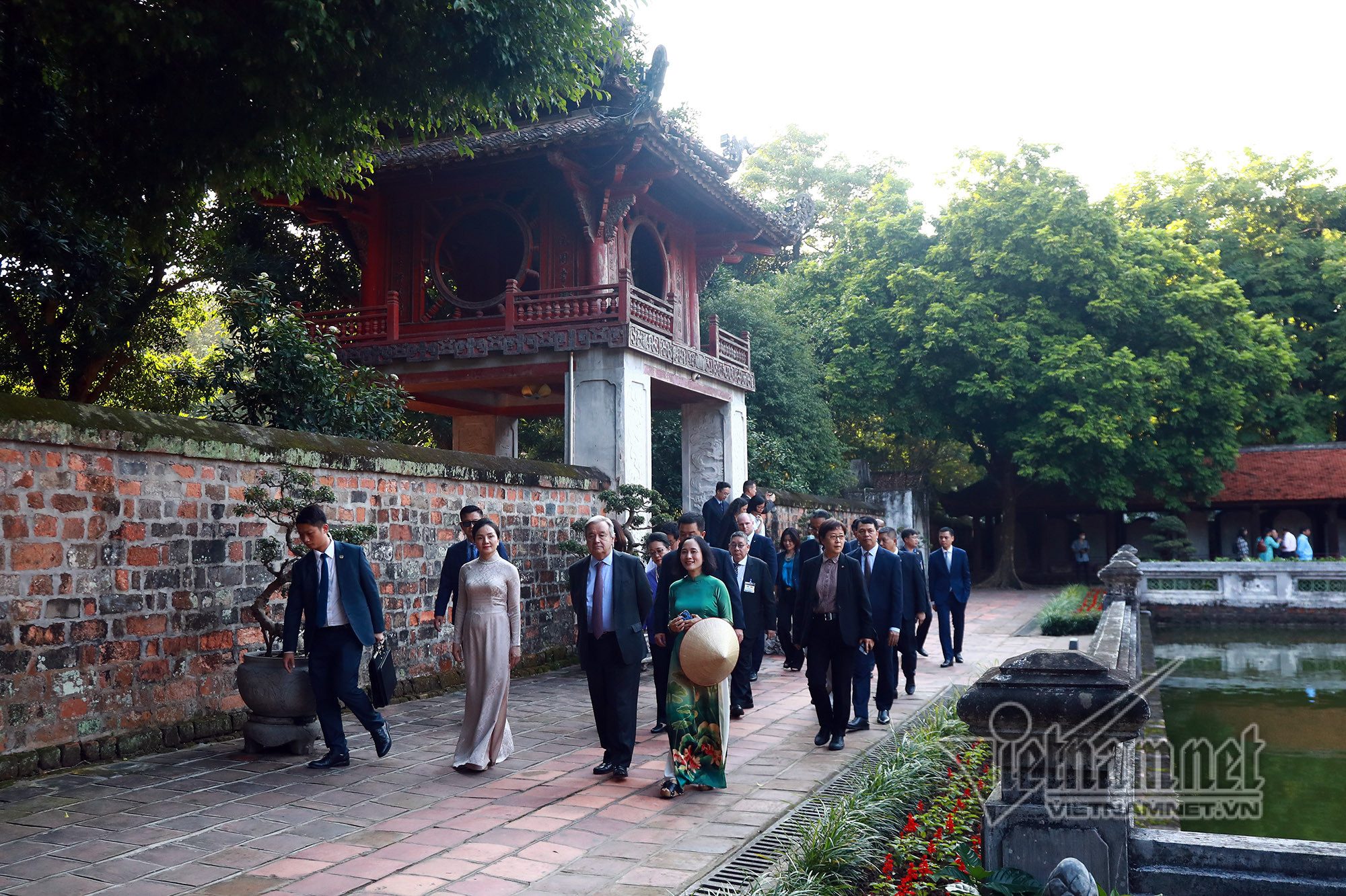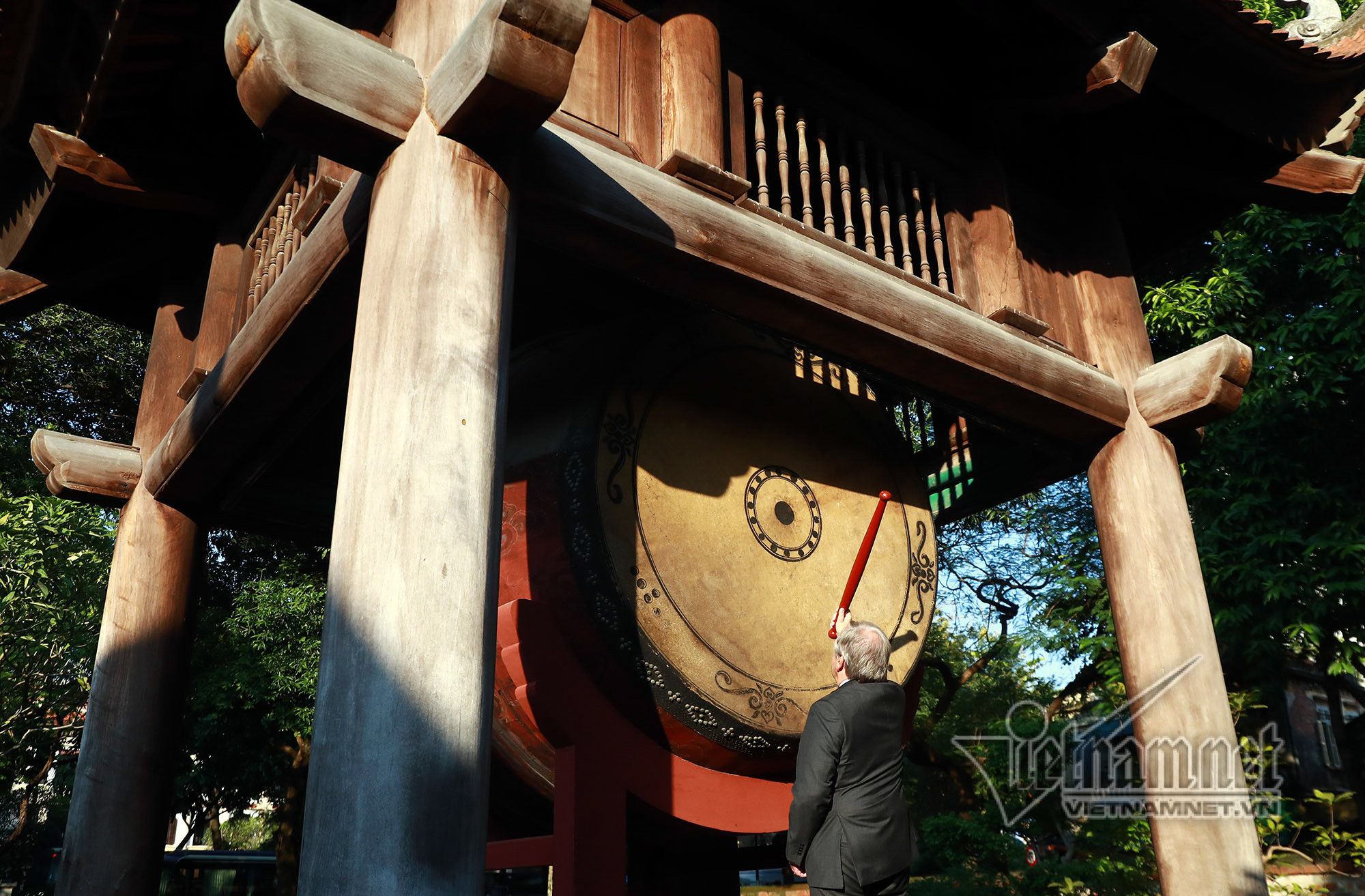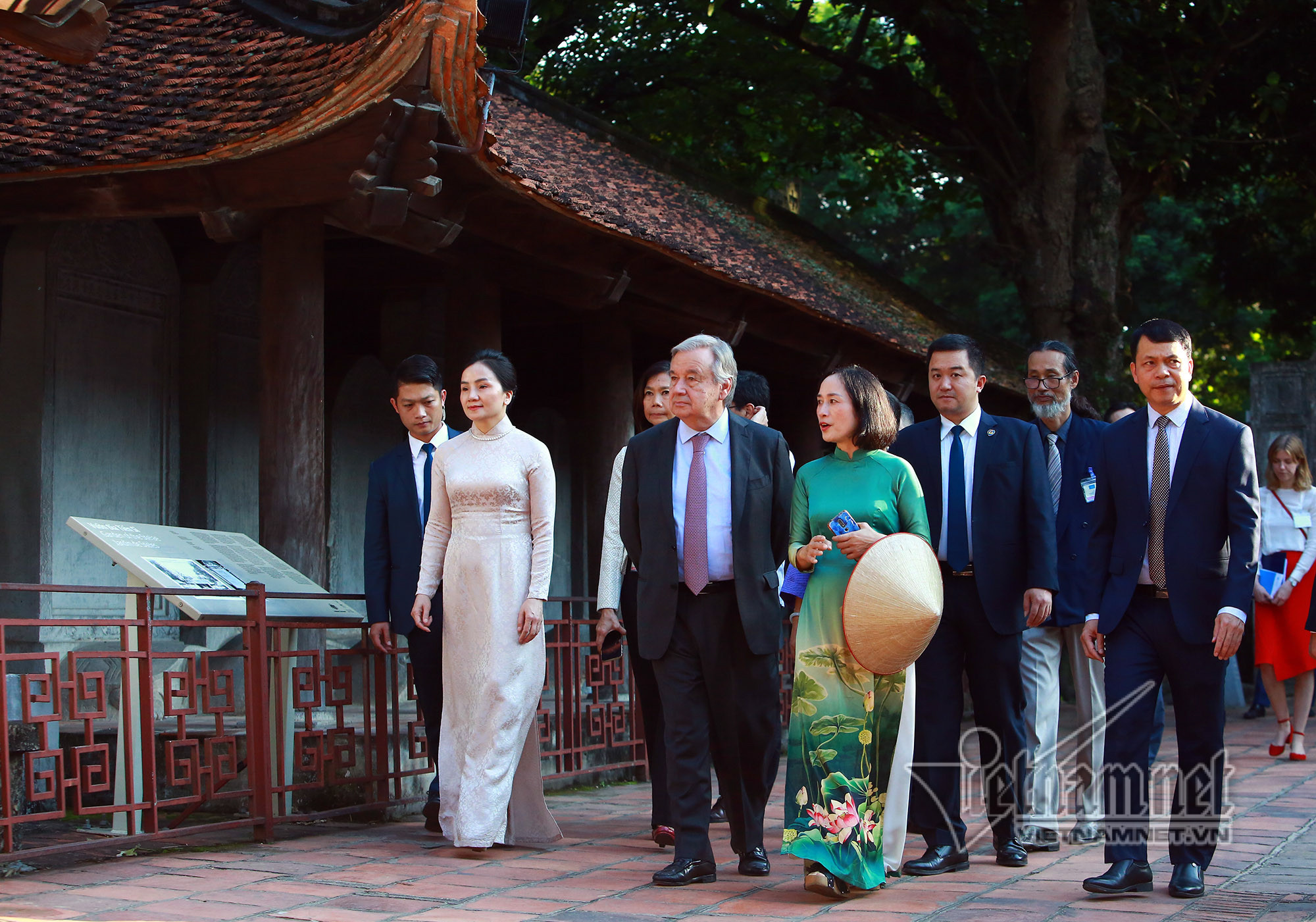 Tại đây, ông António Guterres đã đánh trống sấm trong quần thể Văn Miếu