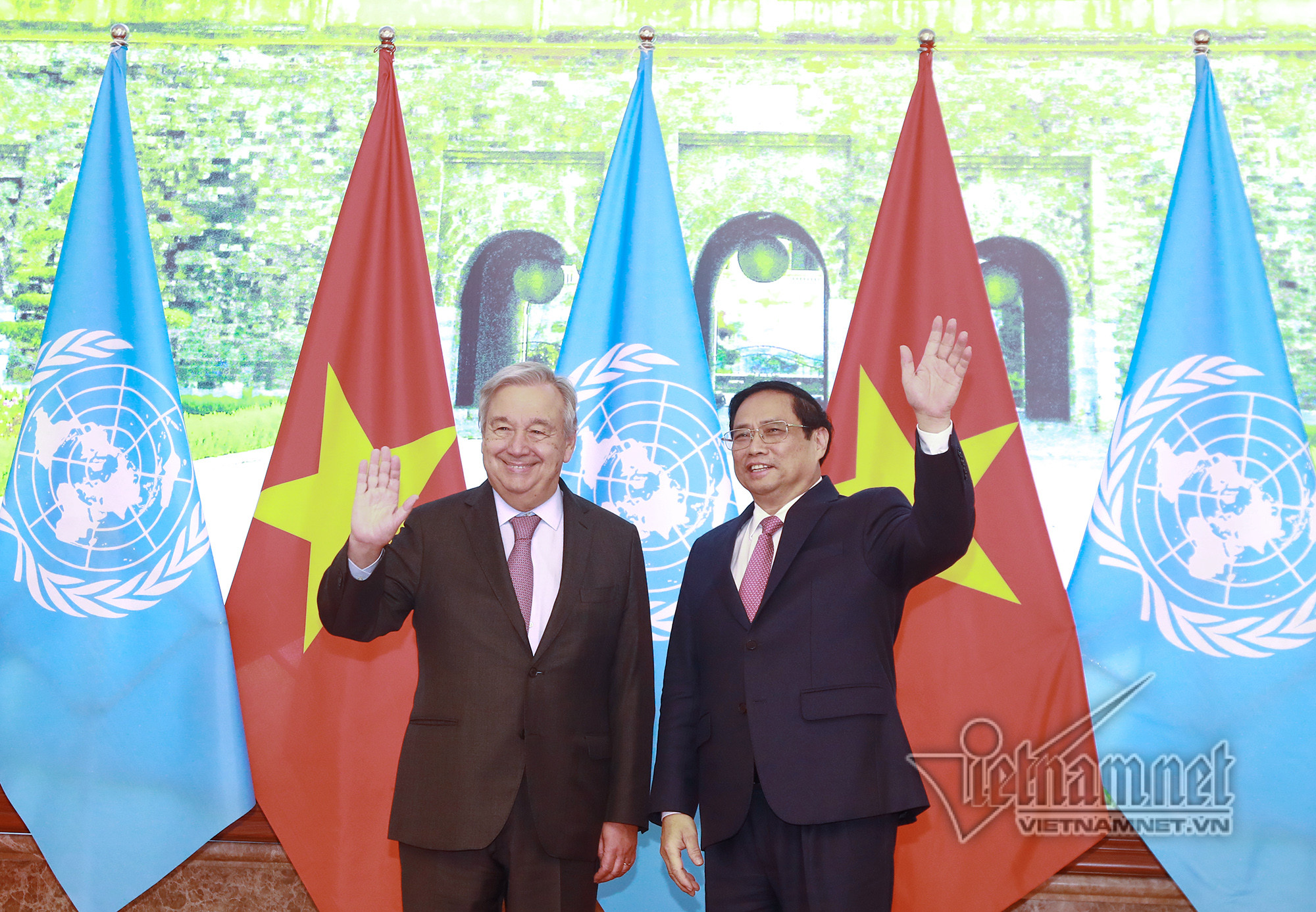 Tổng Thư ký António Guterres chia sẻ khó khăn của các nước, trong đó có Việt Nam, do tác động của tình hình kinh tế thế giới. Ông đánh giá Việt Nam là một trong những nước đi đầu trong cuộc chiến chống bất bình đẳng xã hội, ứng phó biến đổi khí hậu, đánh giá cao những thành tựu to lớn của Việt Nam trong bảo đảm quyền con người.