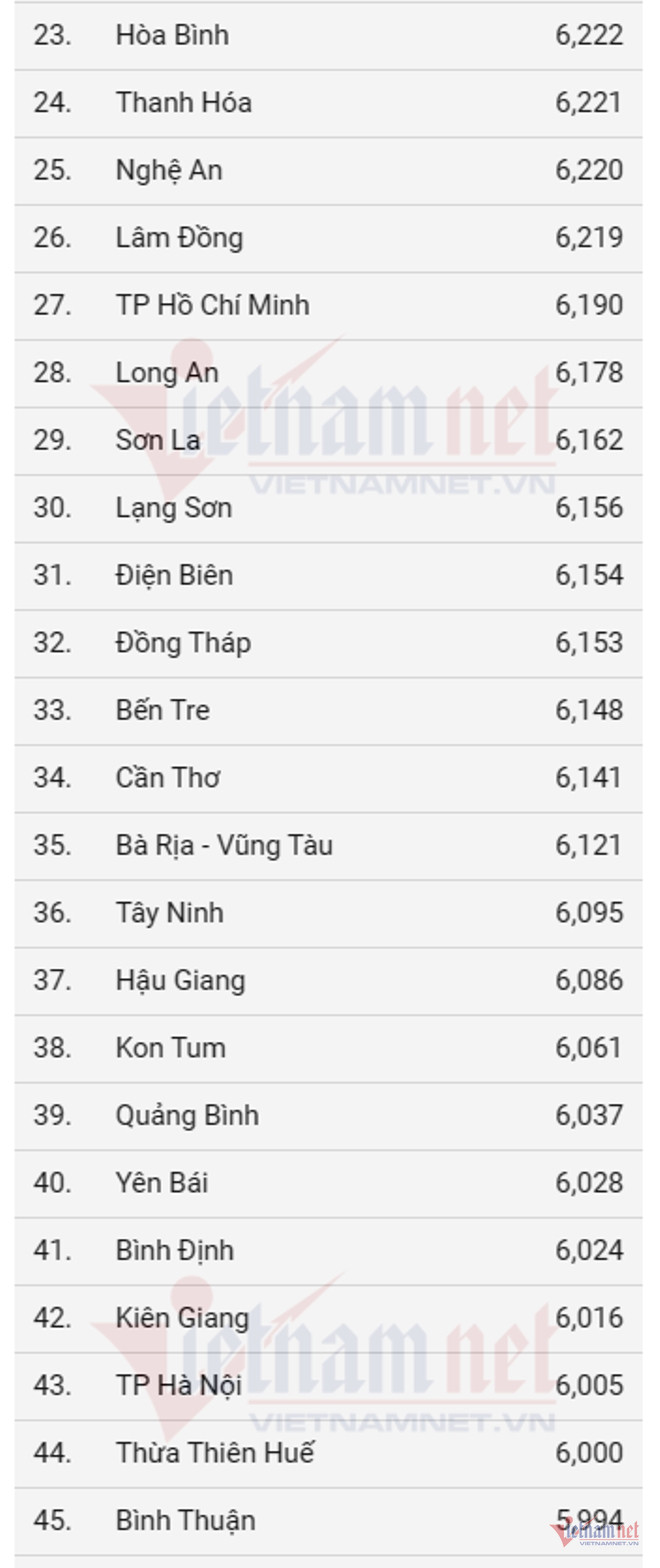 Xếp ở vị trí thứ hai và thứ ba lần lượt là Ninh Bình và Vĩnh Phúc với mức điểm trung bình là 7,275 và 7,246 điểm.