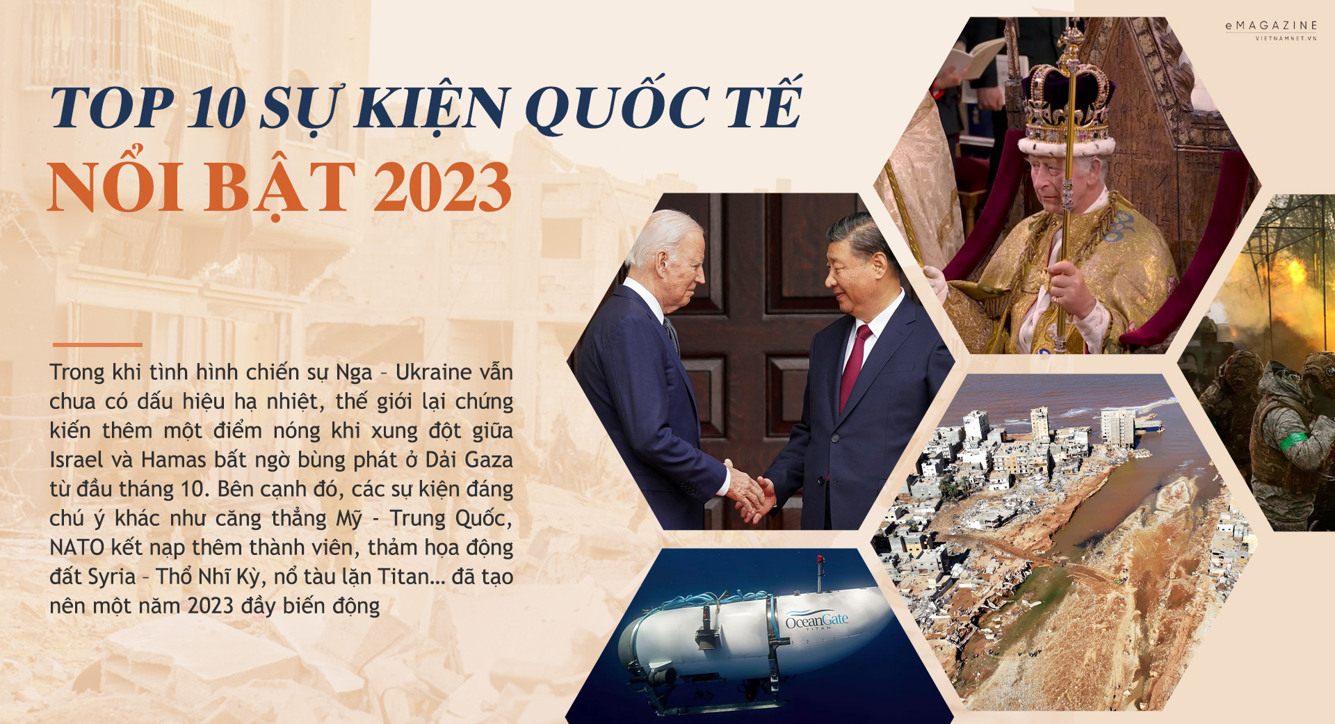 Báo VietNamNet điểm lại top 10 sự kiện nổi bật nhất thế giới trong năm 2023 như sau: