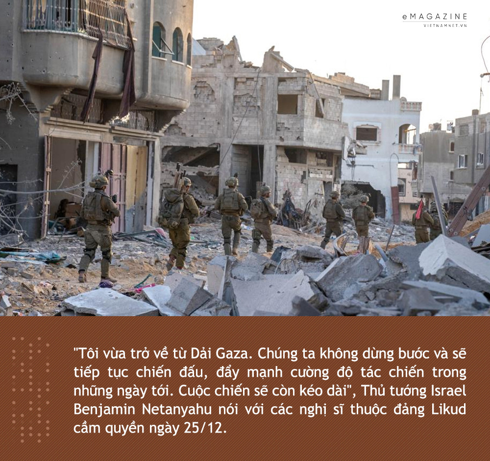 Sự bao vây, phong tỏa cùng các cuộc oanh tạc dữ dội của quân Israel đã đẩy vùng đất này rơi vào khủng hoảng nhân đạo nghiêm trọng và khiến 90% trong số 2,3 triệu cư dân Gaza phải rời bỏ nhà cửa đi sơ tán. Nhờ nỗ lực ngoại giao của cộng đồng quốc tế, hai bên đã thực thi thỏa thuận ngừng bắn 7 ngày, bắt đầu từ ngày 24/11, trao đổi khoảng 320 con tin và tù nhân. Tuy nhiên, giao tranh tái diễn ngay khi thỏa thuận ngừng bắn kết thúc sáng 1/12.