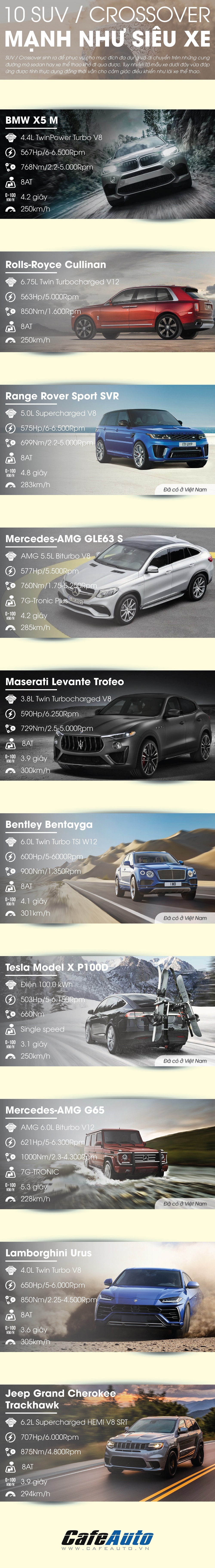 SUV/Crossover sinh ra để phục vụ cho mục đích đa dụng có thể di chuyển trên nhưng cung đường mà sedan hay xe thể thao khó đi qua được. Tuy nhiên 10 mẫu xe dưới đây vừa đáp ứng được tính thực dụng đồng thời vẫn cho cảm giác điều khiển như lái xe thể thao.