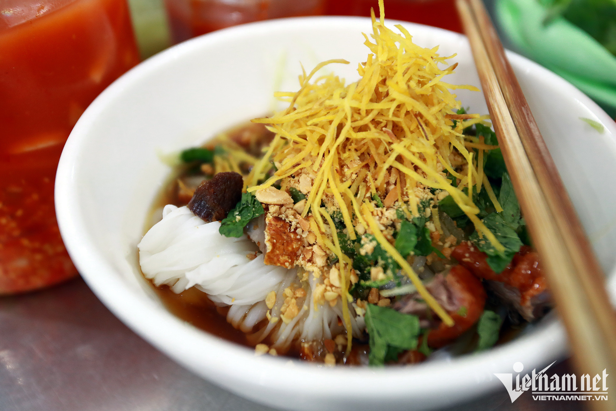 Món bánh có lớp vỏ ngoài giòn trong mềm khá giống bánh rán mặn nhưng dậy vị thơm ngon đậm đà của thịt vịt. Những chiếc bánh nóng hổi chấm với nước mắm chua ngọt, ăn kèm rau xanh thanh mát và đu đủ bào sợi giòn giòn giúp thực khách ăn nhiều cũng không cảm giác ngấy (Ảnh: Thảo Mầu).
