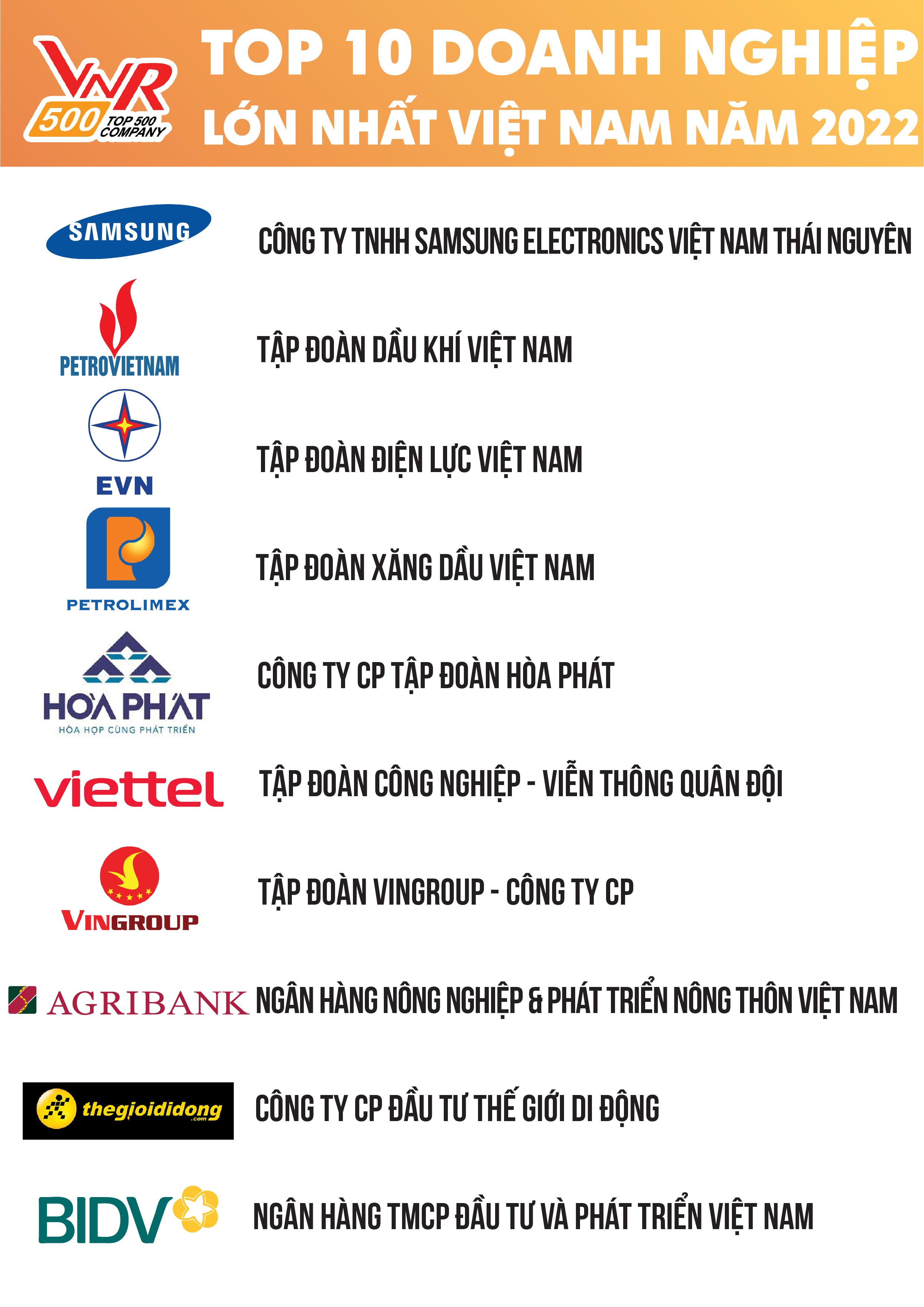 Danh sách 1: Top 10 Bảng xếp hạng Top 500 Doanh nghiệp lớn nhất Việt Nam năm 2022