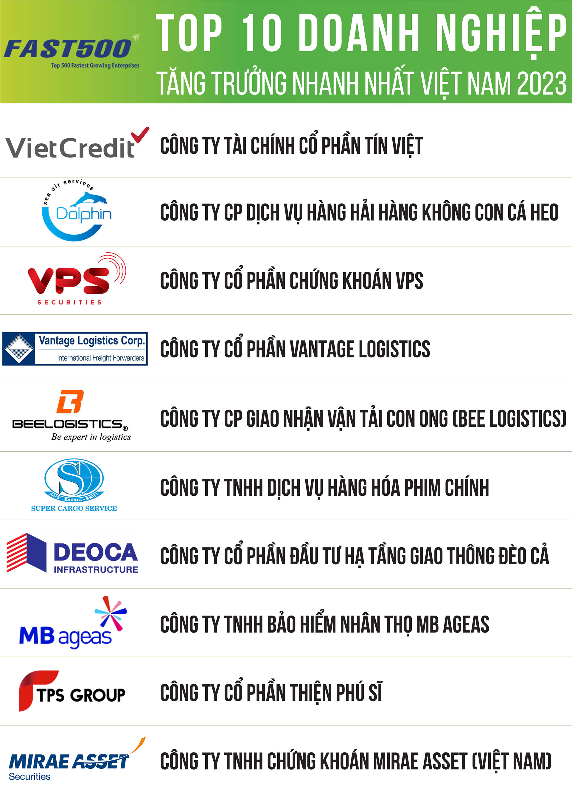 Danh sách Top 10 của Bảng xếp hạng FAST500 năm 2023