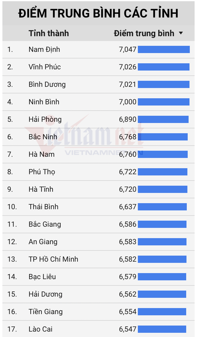 Vĩnh Phúc đứng thứ 2 với trung bình 7,026.