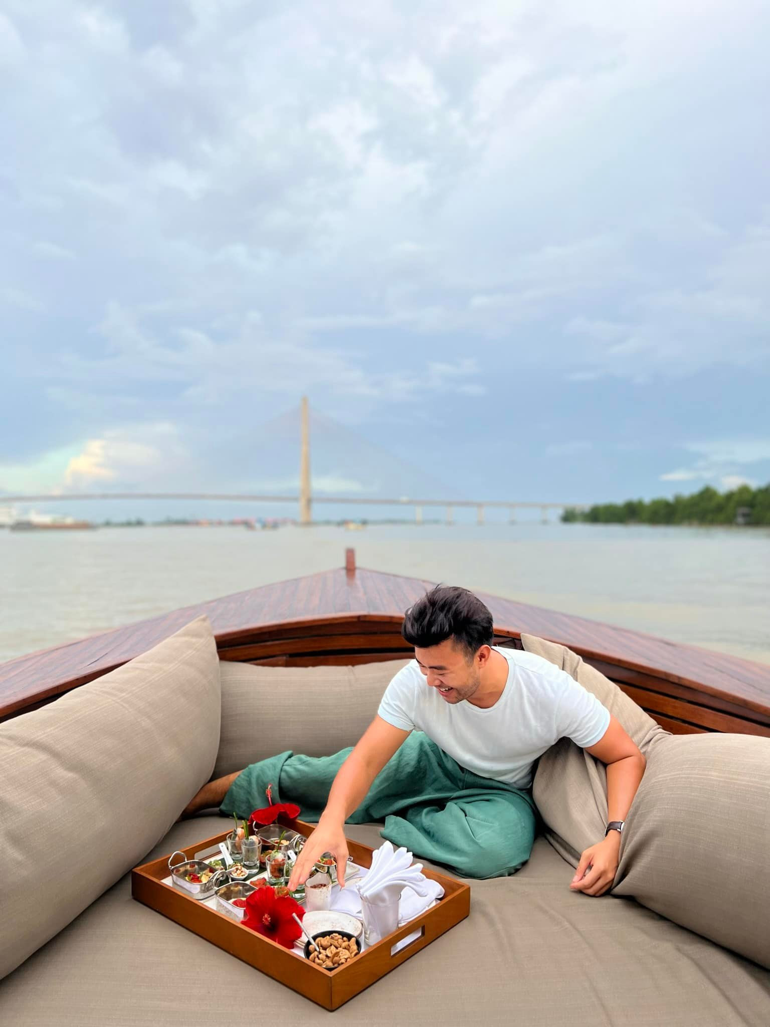 Resort chuẩn bị một chiếc thuyền gỗ lớn, cao cấp để đưa cả nhóm lênh đênh trên sông Hậu, ra bến Ninh Kiều và đỗ tại cầu Cần Thơ để ngắm trọn hoàng hôn. Du khách được phục vụ nước ép, đồ ăn, khăn lạnh... Giá tour là khoảng 1,7 triệu đồng/người.
