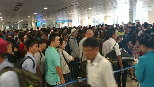 Tại sân bay Tân Sơn Nhất, càng về chiều, lượng người đổ về khu vực sân bay càng đông hơn. Hàng dài người xếp hàng làm thủ tục, nhiều người tranh thủ nghỉ ngơi bên đống hành lý lỉnh kỉnh trước giờ bay. Để tránh tình trạng chờ đợi, ùn ứ như mọi năm, nhiều hành khách cho biết đã tranh thủ về sớm hơn kỳ nghỉ lễ 1 ngày. Tuy nhiên, khi ra sân bay, lượng người vẫn đông ngoài sức tưởng tượng.