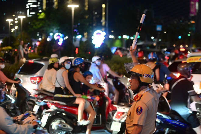 Người dân ùn ùn vào trung tâm TP.HCM xem pháo hoa tối 30/4