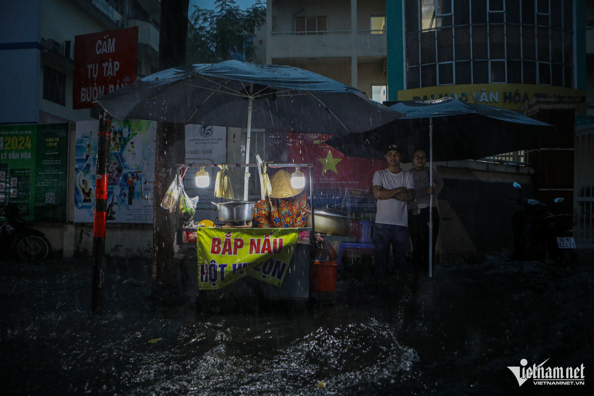 Từ 17h, mưa như trút đổ xuống các tuyến đường như Cách mạng tháng 8, đường 3/2 (quận 10), Ung Văn Khiêm, Xô Viết Nghệ Tĩnh (quận Bình Thạnh), Quốc Hương (TP Thủ Đức)...