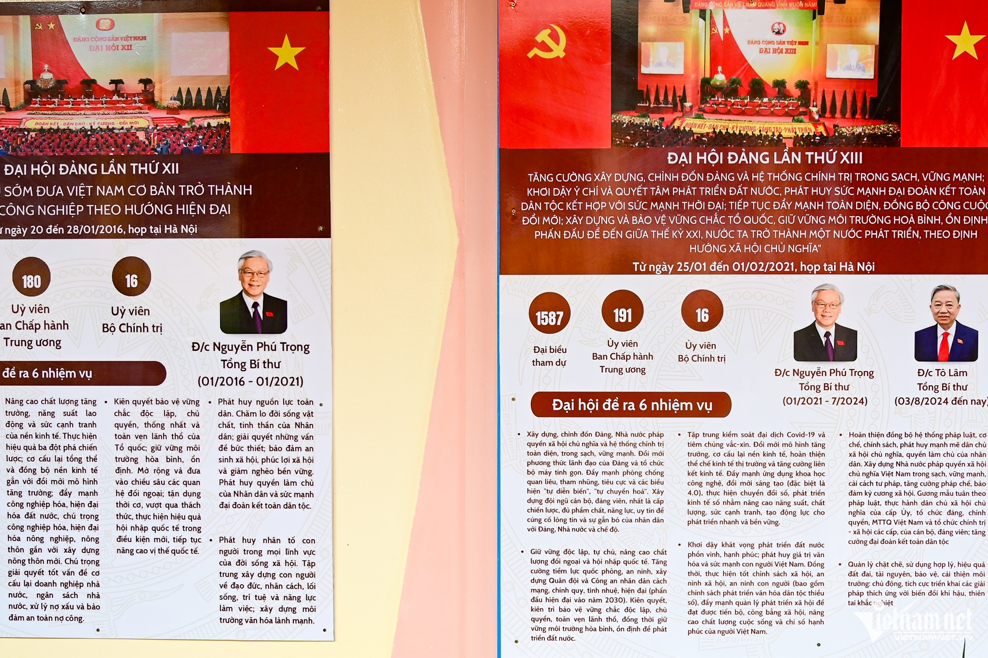 Triển lãm nói về vai trò quyết định của Chủ tịch Hồ Chí Minh trong việc thành lập Đảng năm 1930. Người đã tham dự 3 kỳ Đại hội. Sau khi qua đời năm 1969, tư tưởng của Người tiếp tục được Đảng vận dụng, phát triển qua các kỳ Đại hội tiếp theo, góp phần đưa đất nước đổi mới, hội nhập và phát triển.