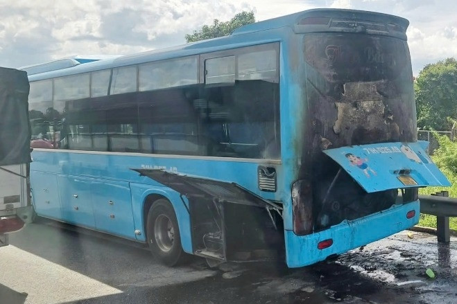Cháy xe giường nằm trên cao tốc TPHCM - Trung Lương, hành khách hoảng loạn