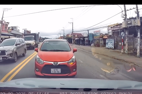 Camera hành trình của một ô tô dừng chờ đèn tín hiệu đã ghi lại cảnh 5 xe khác nối đuôi nhau vượt đèn đỏ trên quốc lộ 51, đoạn qua Bà Rịa - Vũng Tàu (cũ). Thời điểm này, có nhiều người đi bộ băng qua đường theo hướng cắt ngang.