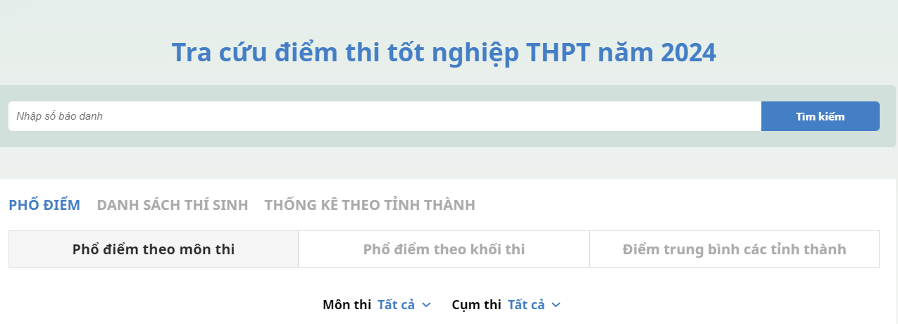 Bộ GD-ĐT vừa công bố điểm thi tốt nghiệp THPT 2024. Để xem điểm thi tốt nghiệp THPT 2024, các thí sinh, phụ huynh và quý độc giả có thể vào https://vietnamnet.vn/giao-duc/diem-thi/tra-cuu-diem-thi-tot-nghiep-thpt-2024.