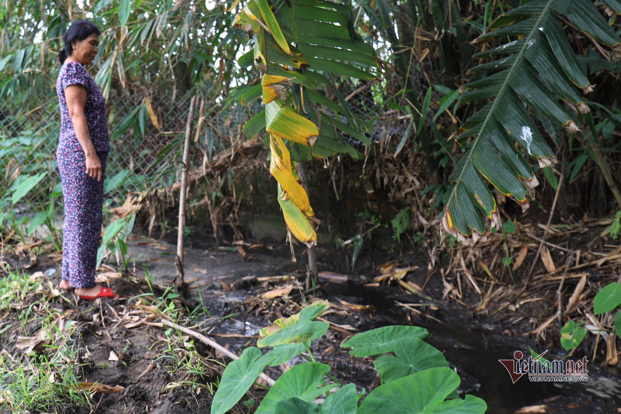 | Nước thải chảy thẳng ra ruộng khiến người dân không thể canh tác |
