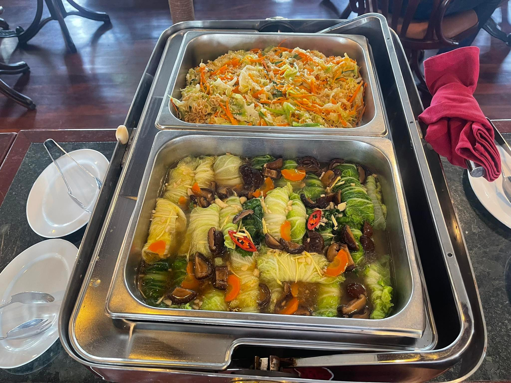 Các bữa ăn thay đổi linh hoạt với nhiều món ngon chế biến từ hải sản tươi sống đặc trưng của Hạ Long cũng như các món Á-Âu.
