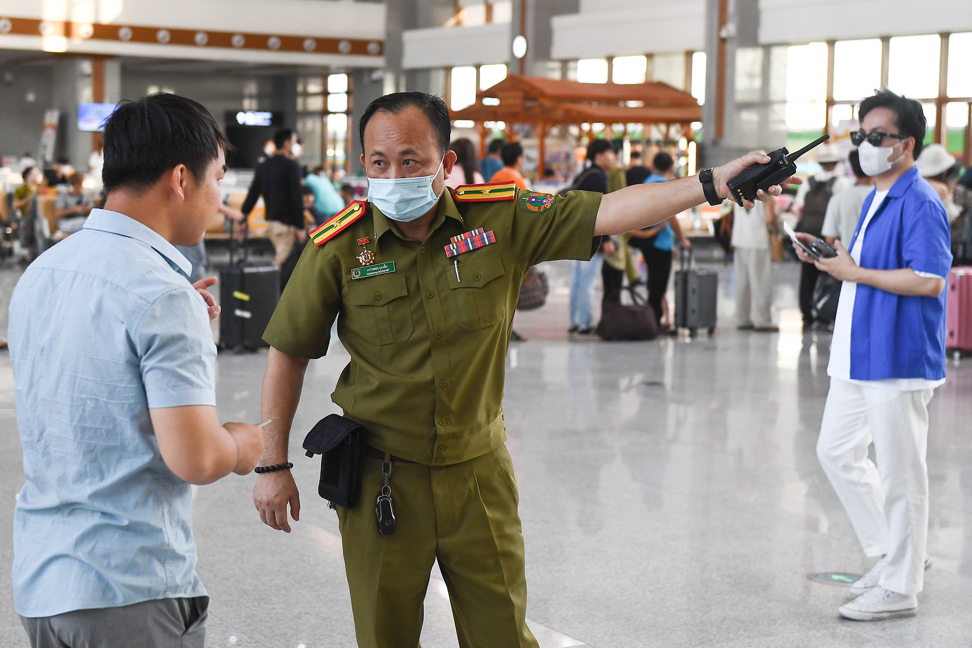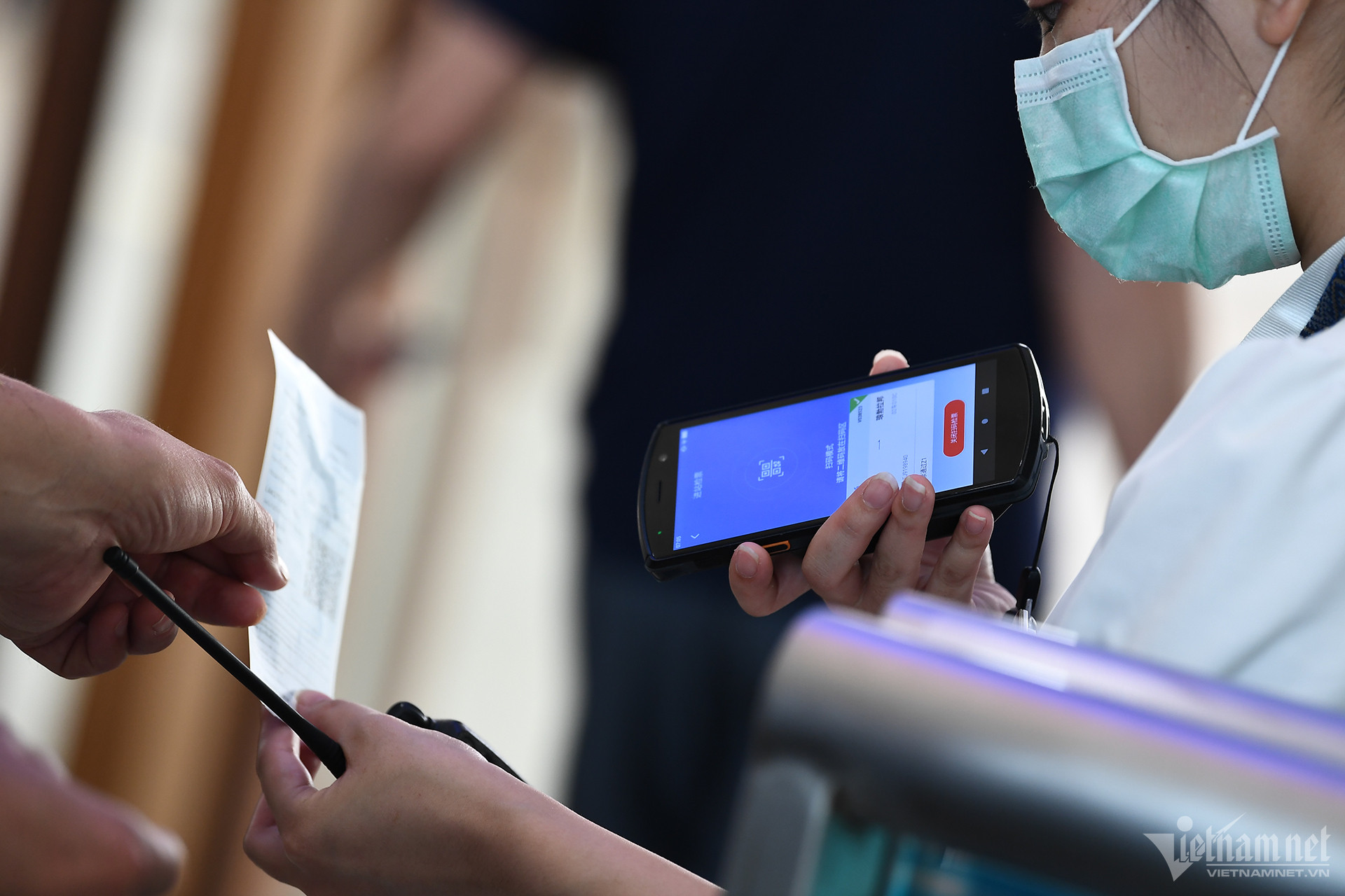 Khi qua cửa kiểm soát, khách sẽ đưa vé kèm hộ chiếu cho nhân viên đường sắt để đối chiếu tên và quét mã.