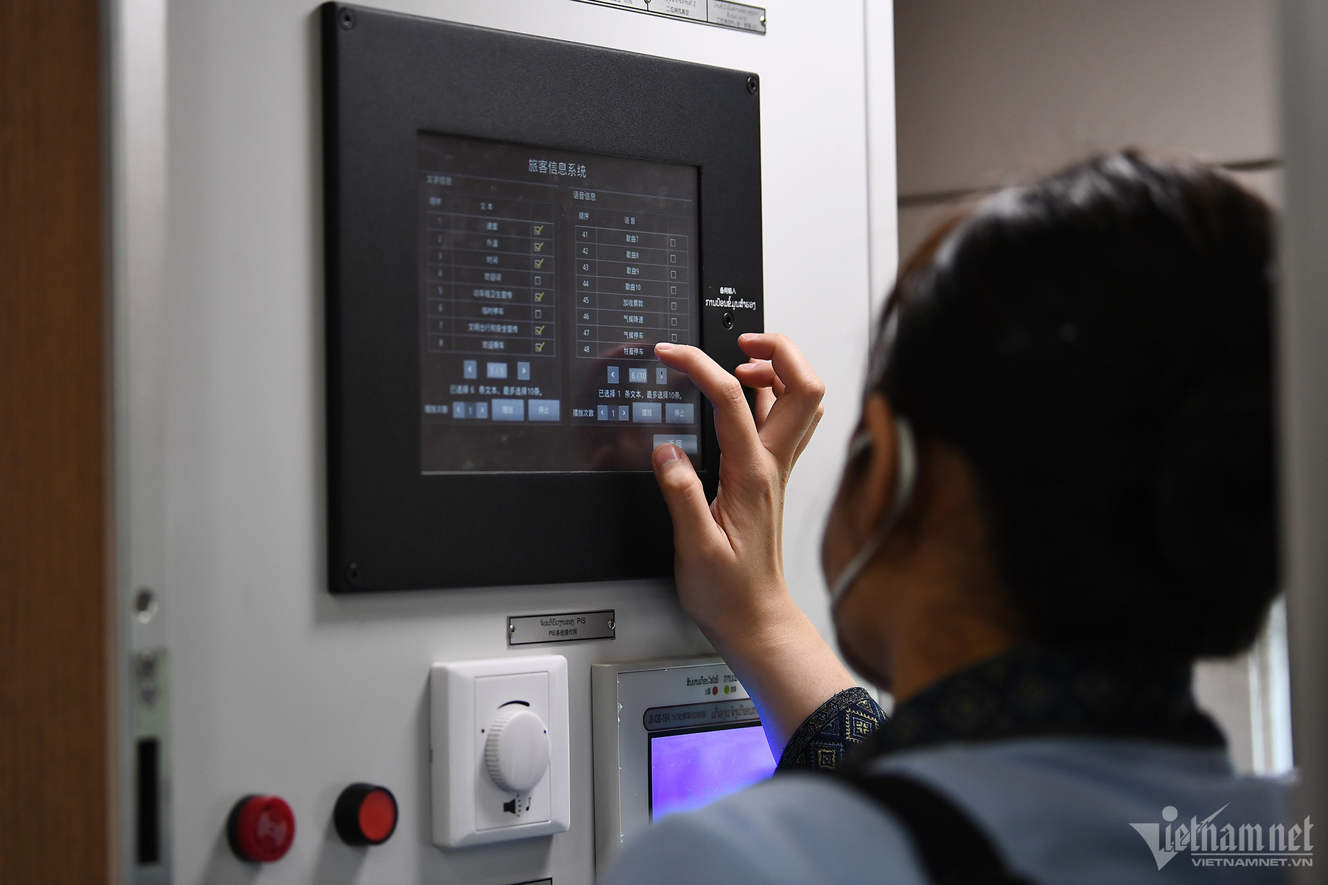 Trên cửa ra vào, bảng hiện thị liên tục cập nhật thông số tốc độ di chuyển, thời tiết bên ngoài cũng như việc nhắc nhở hành khách đeo khẩu trang phòng chống dịch Covid-19.