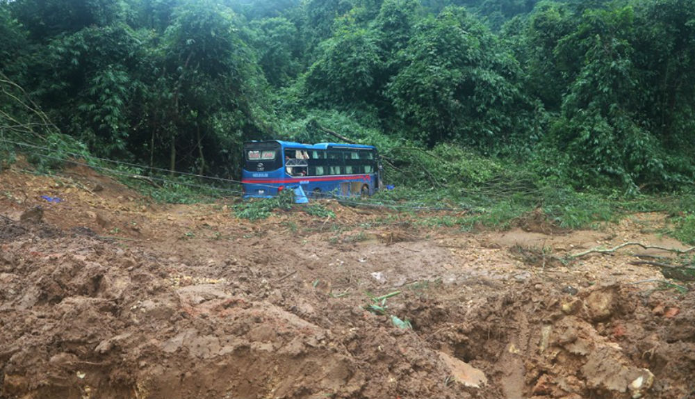 | Vụ sạt lở đẩy một xe khách cùng 22 hành khách xuống vực, khiến 5 người bị thương |
