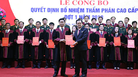 Tòa án nhân dân Tối cao vừa tổ chức lễ công bố quyết định của Chủ tịch nước bổ nhiệm Thẩm phán Cao cấp đợt 1, năm 2018.