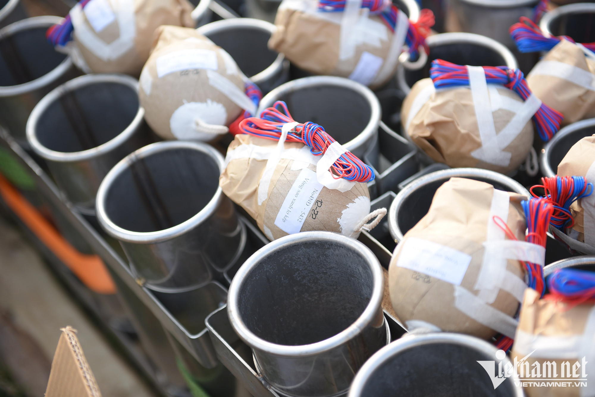 Dây tín hiệu được đấu nối vào khu vực bàn điểu khiển trung tâm. Điểm đặc biệt năm nay mỗi quả pháo hoa có dây dẫn tín hiệu riêng, (năm ngoái là 5 quả đi chung một dây).