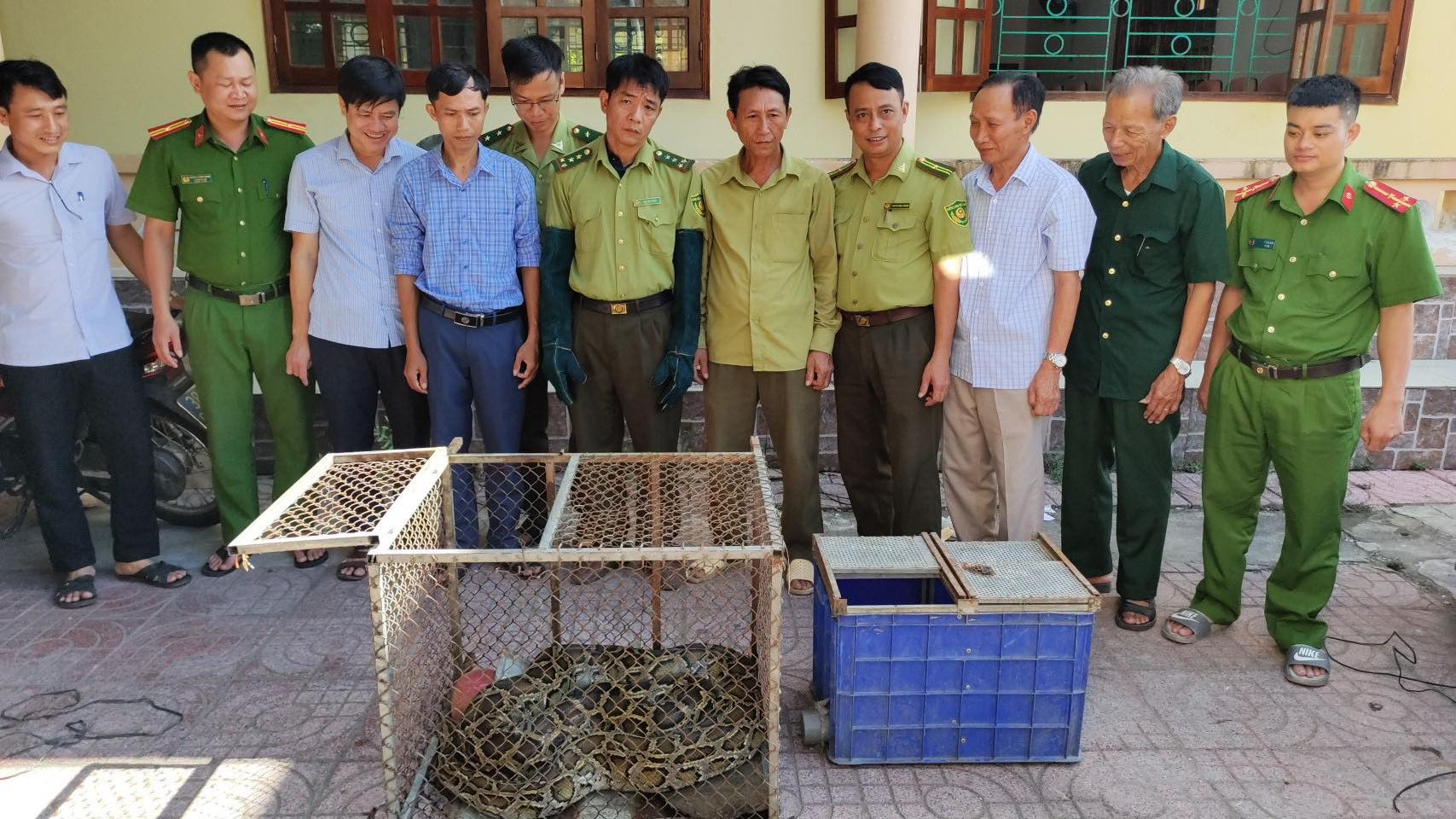Sáng 20/6, Hạt Kiểm lâm huyện Lộc Hà (tỉnh Hà Tĩnh) vừa phối hợp với các lực lượng liên quan bàn giao con trăn đất quý hiếm cho Vườn quốc gia Vũ Quang để tiếp tục theo dõi và chăm sóc trước khi tái thả về môi trường rừng tự nhiên.
