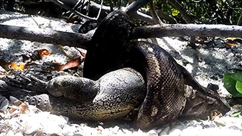 Xem trăn 'khủng' nuốt chửng kỳ nhông khổng lồ