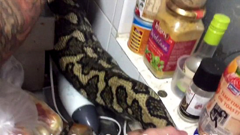 Đoạn video gây hoảng sợ cho người xem khi người đàn ông phát hiện con trăn 'khủng' đang nằm sau lò vi sóng ở nhà bếp của một gia đình ở Sunshine Coast, Queensland, Australia.
