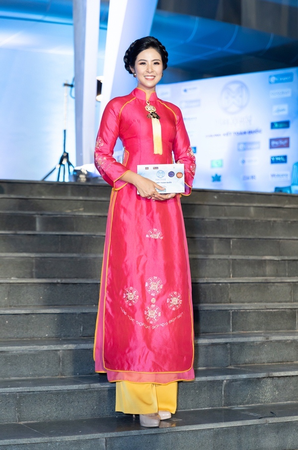 | Hoa hậu Việt Nam 2000 - Đặng Thị Ngọc Hân chọn áo dài truyền thống để xuất hiện trong đêm chung kết. |