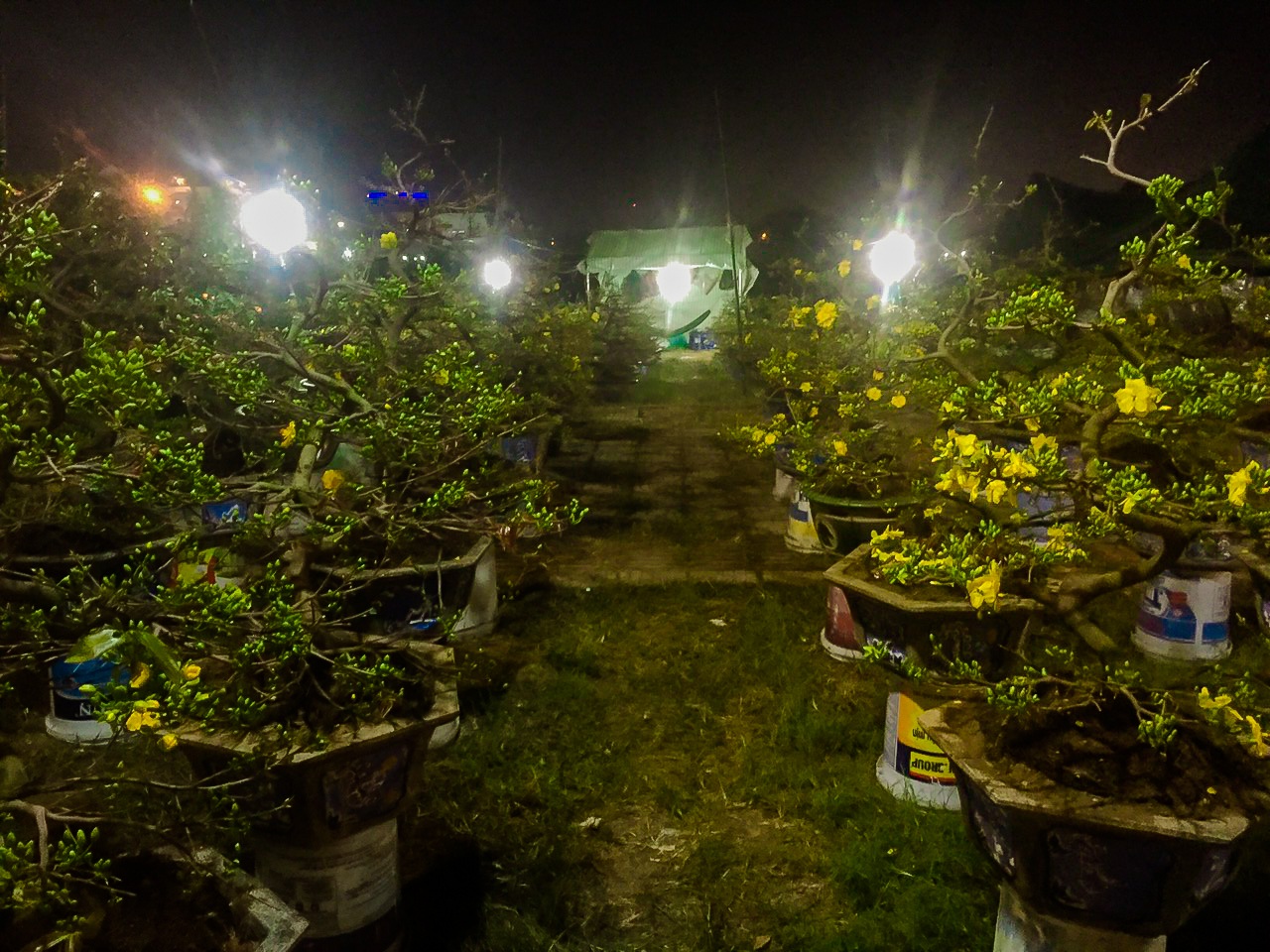 Khoảng 2 tuần gần đây, những tiểu thương buôn bán cây cảnh phục vụ dịp tết Canh Tý 2020 trên đường Nguyễn Sinh Sắc (Đà Nẵng) phải luân phiên thay nhau thức canh cây hoa cảnh. Theo tiểu thương Nguyễn Hữu Hiền, có những cây có giá trị rất lớn được vận chuyển từ Thái Nguyên lên tới 100 triệu đồng.