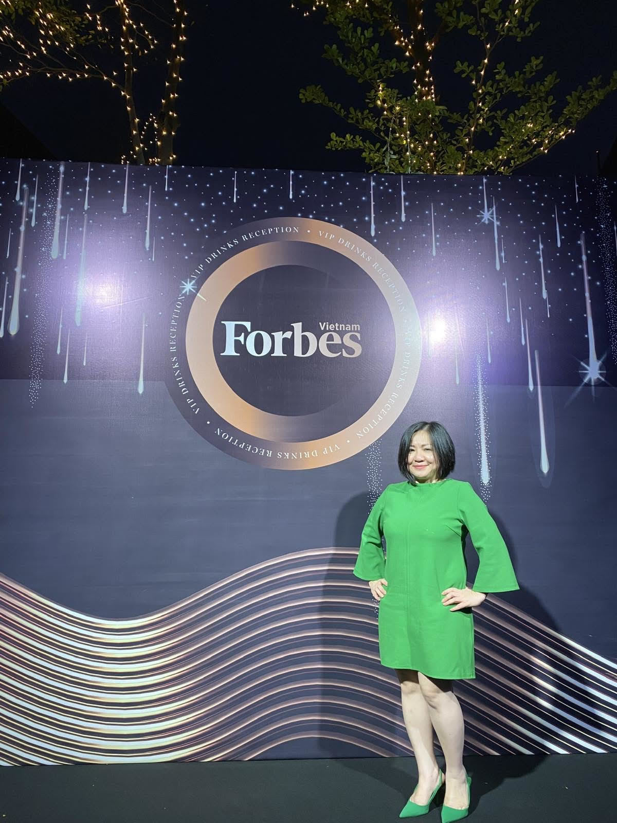 Tại sự kiện do Tạp chí Forbes tổ chức vào tháng 12/2021 vừa qua, chị chọn bộ trang phục có màu xanh lá cây của Zara. Trong bộ trang phục bắt mắt, Trang Lê đầy tự tin, năng lượng tích cực.