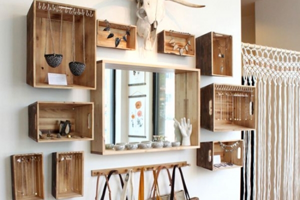 Trang trí tường nhà ấn tượng từ hộp gỗ