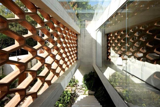 Lấy ý tưởng tổ ong làm chủ đạo, rất nhiều vách tường độc lạ xuất hiện khắp nơi trong ngôi nhà hiện đại này.
