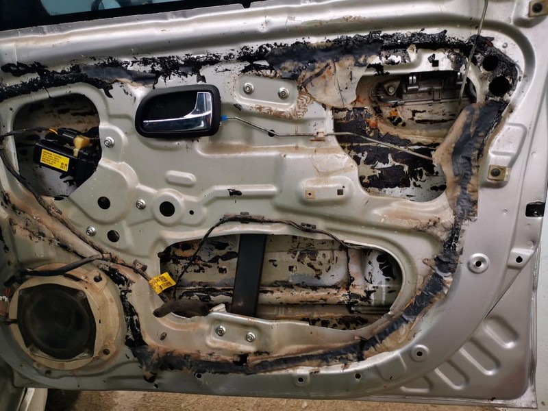 Theo quan sát những hình ảnh được chủ xe chia sẻ, các cánh cửa của xe để lại những vết hoen gỉ do thấm nước lâu dài, đồng thời xuất hiện vết đen của chất dính miếng chống ồn. Người chủ xe này cũng chia sẻ đây là một hoạt động lãng phí mà chưa rõ hiệu quả.