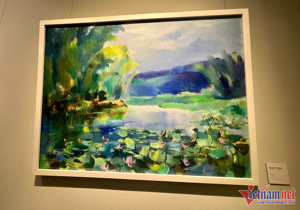 Họa sĩ Nguyễn Trí Minh vẽ Giverny để tái hiện vùng đất cùng tên, với hồ súng, hàng liễu. Đây cũng là quê hương của danh họa Claude Monet tại Pháp. Ông tạo điểm nhấn bởi sắc xanh lam và xanh lục hòa lẫn. Họa sĩ cũng mở ra không gian mênh mang, sâu thẳm với việc trình bày khổ tranh lớn, điểm vài gam màu nóng đặc trưng.