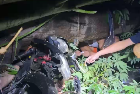 Trên cung đường này, có một số cây xanh bị gãy đổ cũng là nguyên nhân gây ách tắc giao thông.