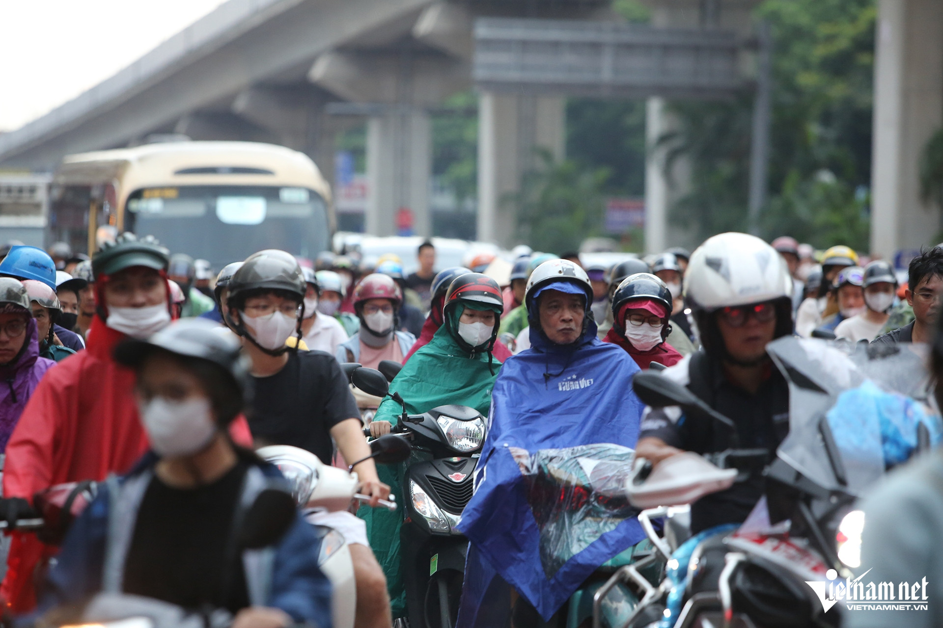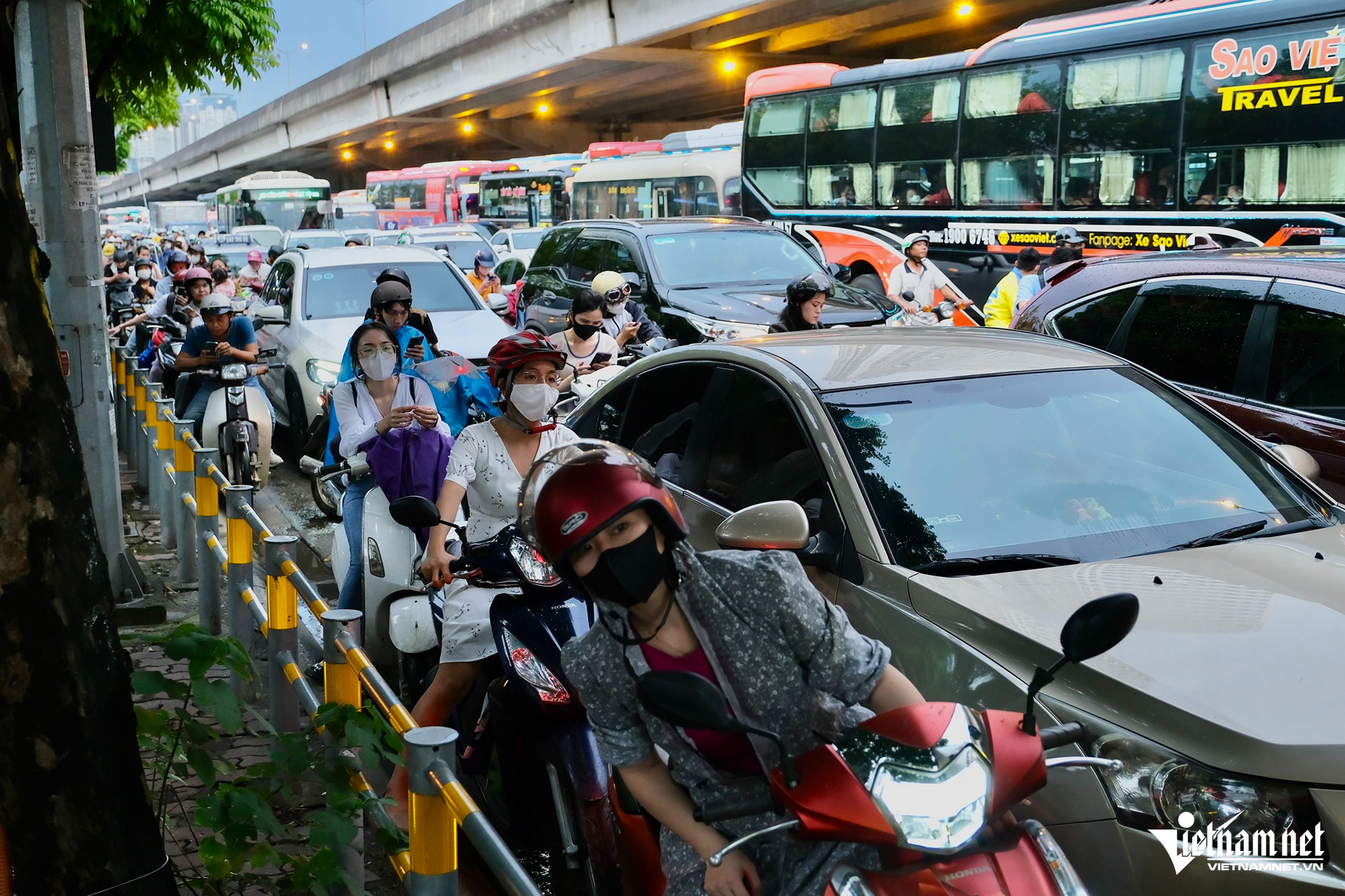 Dòng xe kéo dài đến qua hầm chui Thanh Xuân, ước tính tới 4km. Người dân chỉ có thể di chuyển với vận tốc từ 10 - 15km/h.
