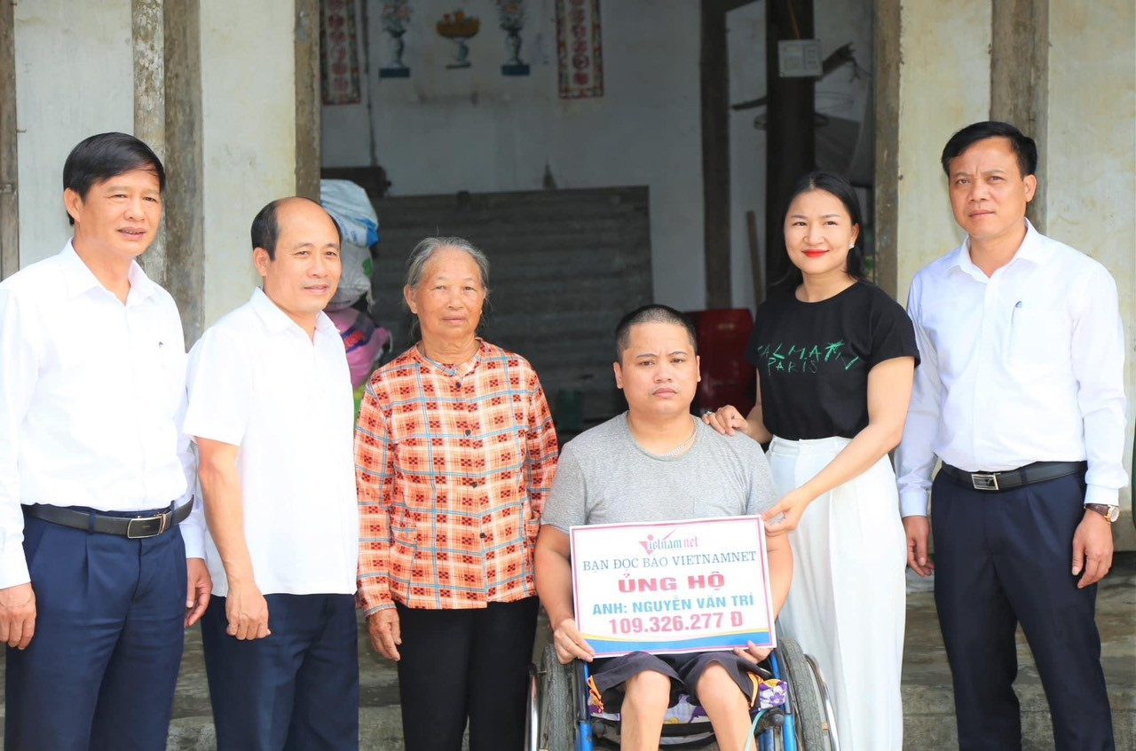 PV Báo VietNamNet vừa phối hợp với lãnh đạo UBND huyện Thạch Hà, UBND xã Thạch Hội (huyện Thạch Hà, Hà Tĩnh) trao số tiền 109.326.277 đồng đến gia đình anh Nguyễn Văn Trí, nhân vật trong bài viết: "Con trai đuối nước tử vong, vợ đem theo con gái bỏ đi để mặc chồng bại liệt". Đây là tấm lòng của các nhà hảo tâm thông qua STK của Báo gửi về ủng hộ, chia sẻ với những khó khăn mà anh Trí đang gặp phải.