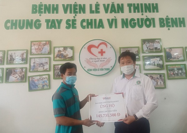 Sau khi hoàn cảnh của gia đình được chia sẻ, anh Tiền nhận được rất nhiều tình thương của bạn đọc hảo tâm. Ngoài số tiền 145.731.500 đồng ủng hộ qua tài khoản Báo VietNamNet, nhiều nhà hảo tâm đã trực tiếp liên hệ qua bệnh viện và gia đình để giúp đỡ.