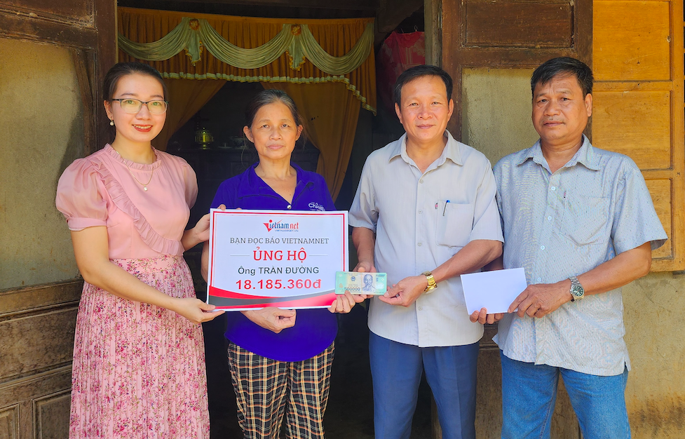Báo VietNamNet vừa phối hợp với lãnh đạo UBND xã Gio Sơn (huyện Gio Linh) trao số tiền hơn 18 triệu đồng đến ông Trần Đường (SN 1963, trú tại thôn Phú Ốc). Ông Đường là nhân vật trong bài viết: “Chồng ung thư di căn đau đớn, vợ đỏ mắt đi khắp nơi vay mượn”.