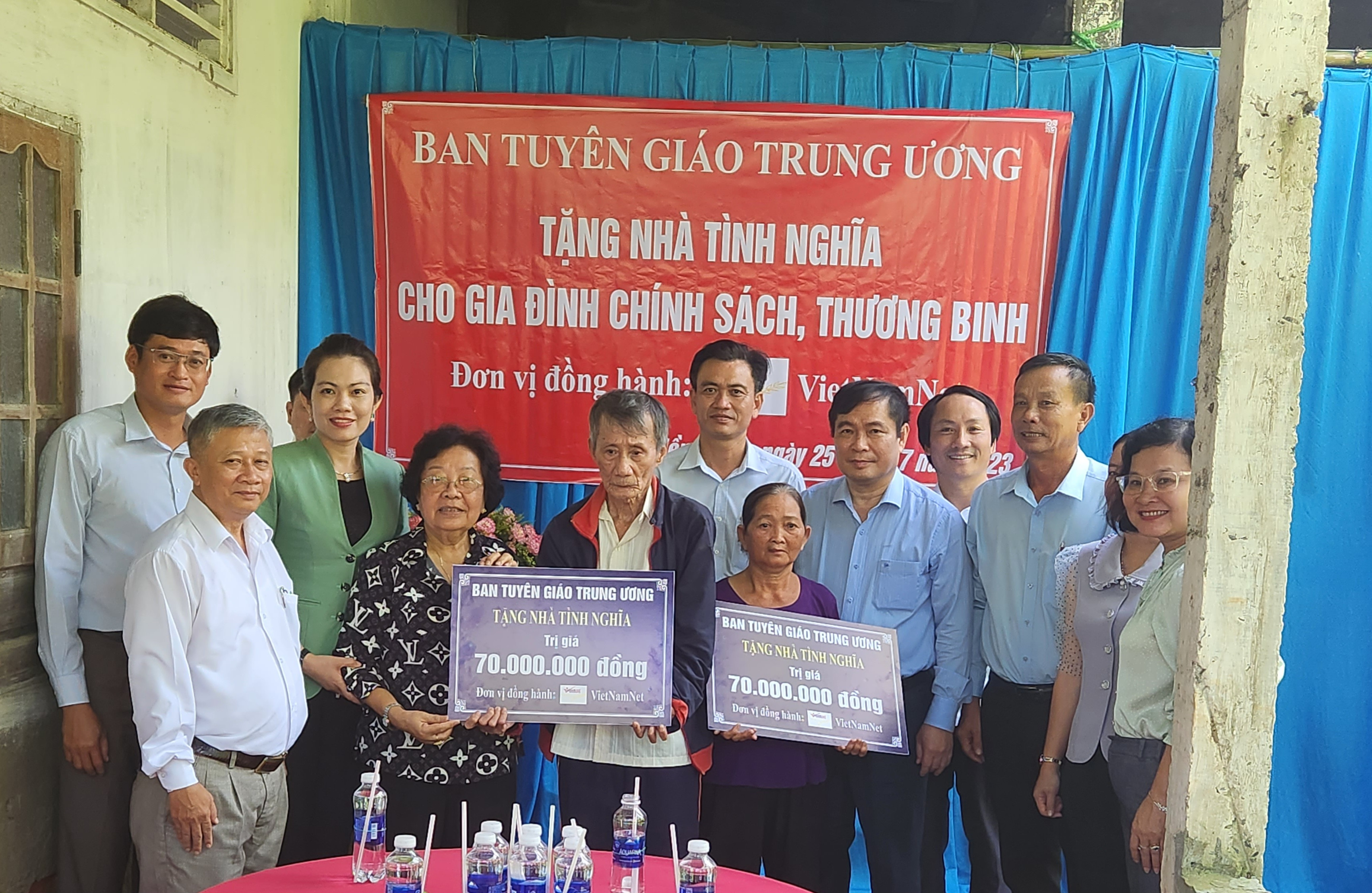 Nhân dịp này, được sự giới thiệu từ chính quyền địa phương, thông qua chương trình Ngôi nhà mơ ước do Báo VietNamNet phát động, Ban Tuyên giáo Trung ương đã trao kinh phí xây 2 căn nhà tình nghĩa cho hộ bà Nguyễn Thị Sam và ông Nguyễn Hoàng Nam. Theo đó, bà Sam (SN 1956) là con liệt sĩ, ở ấp Rạch Trắc, xã Phước Mỹ Tây, thị xã Cai Lậy. Ông Nam (SN 1943) là thương binh ở ấp Kinh Ngang, xã Tân Thành, huyện Gò Công Đông.