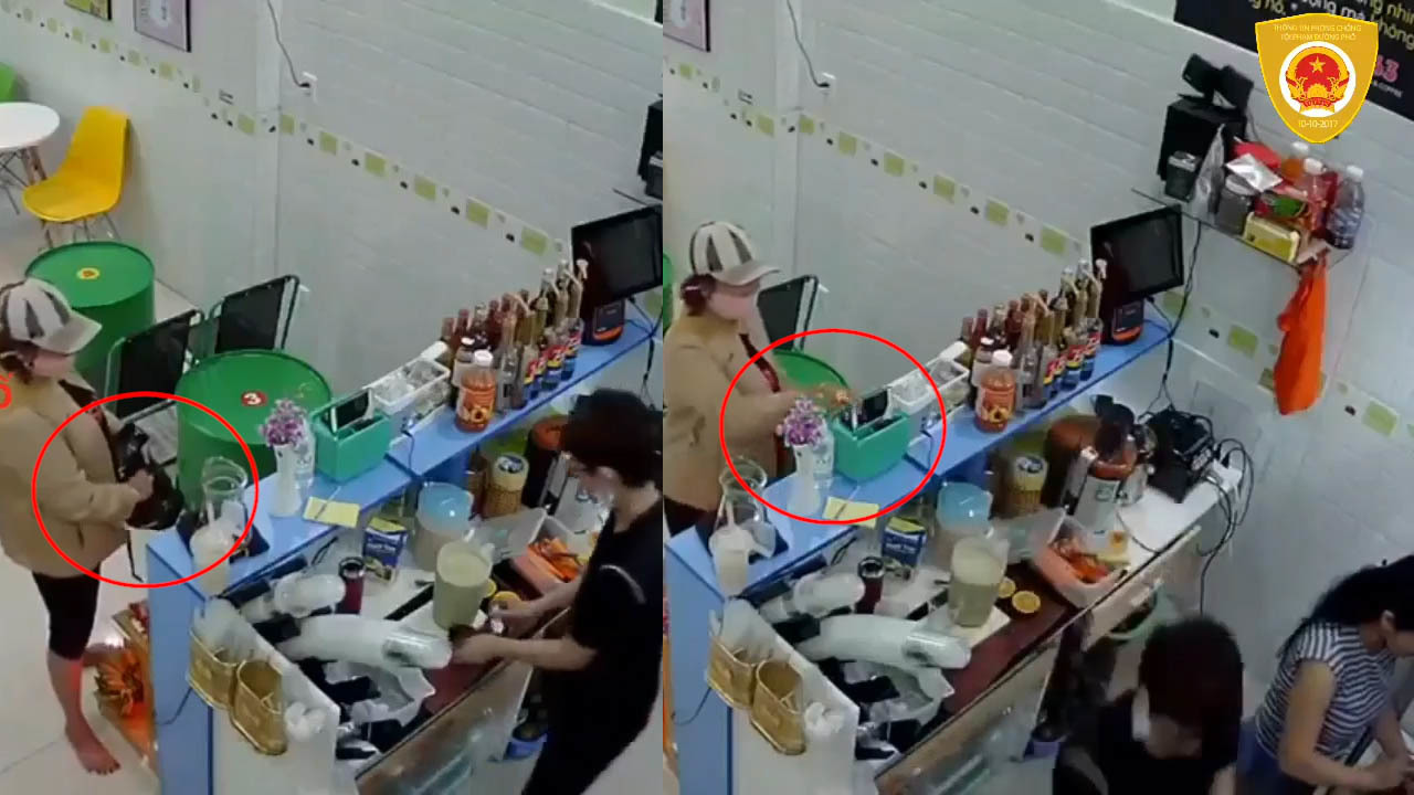 Người phụ nữ bước vào cửa hàng vờ mua nước đã nhanh tay lấy trộm toàn bộ tiền trong túi xách và điện thoại rồi lên xe máy tẩu thoát.