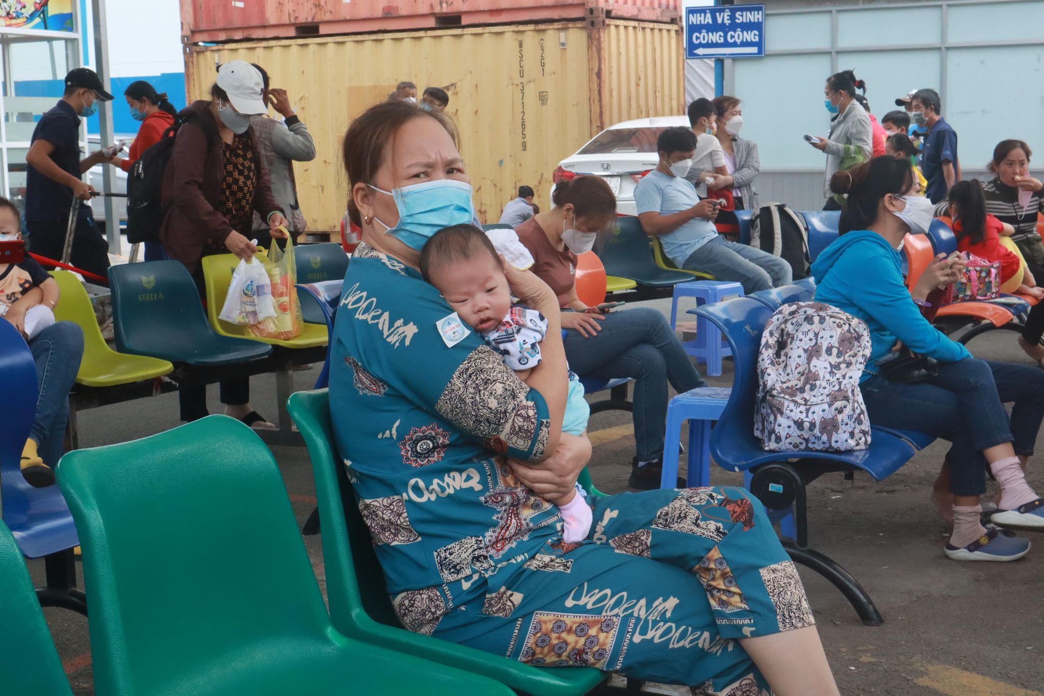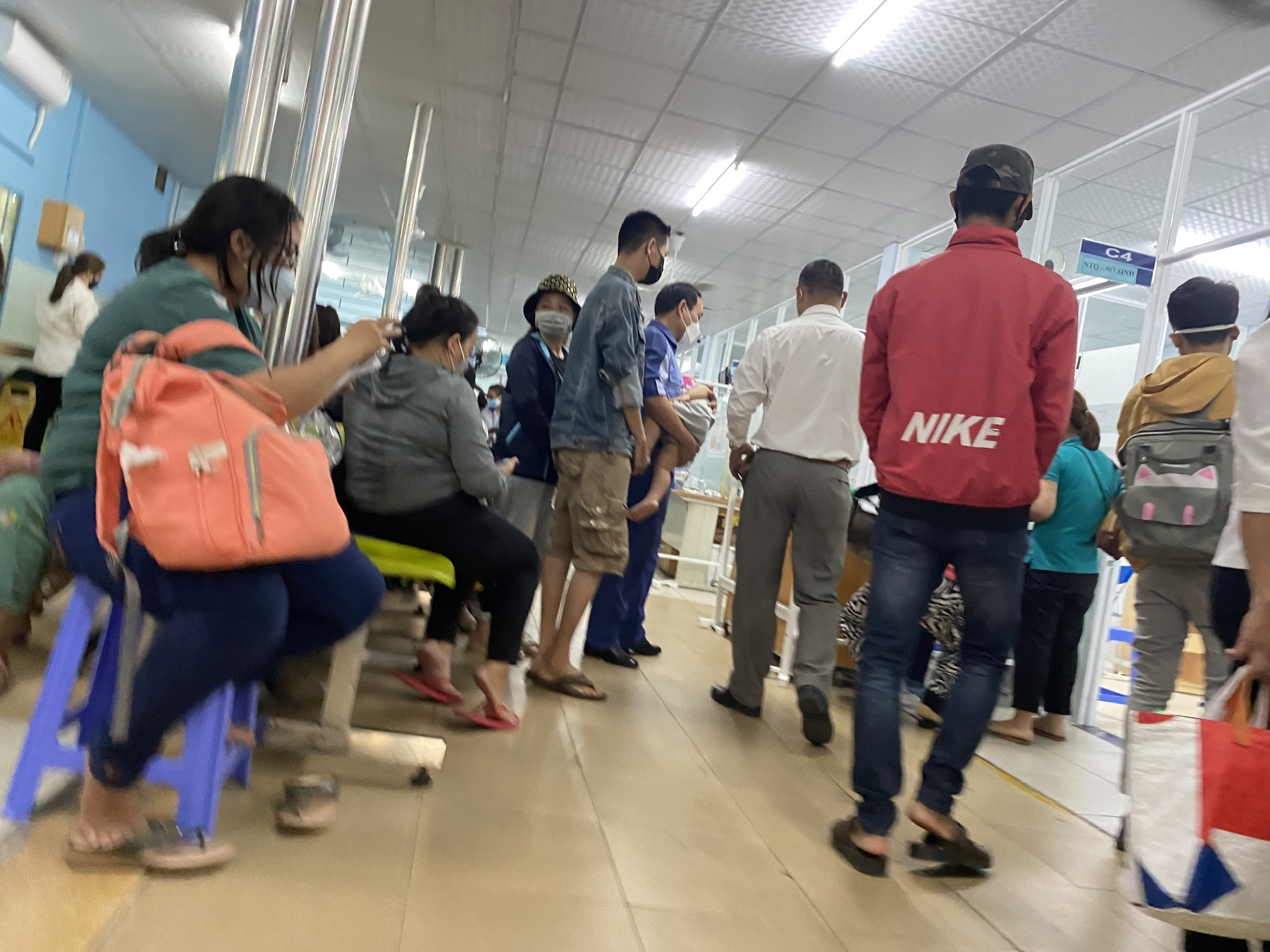 “Chờ đến lượt test gần 1 tiếng, chờ lấy kết quả thêm hơn nửa tiếng nữa. Rồi cứ đi vòng vòng tìm phòng này phòng khác để duyệt hồ sơ. Tôi còn mệt chứ đừng nói trẻ con", chị Thùy kể.