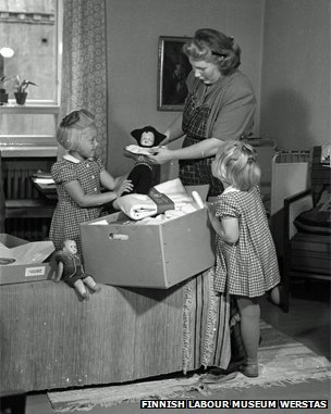 "Thật dễ dàng để biết em bé được sinh ra vào năm nào, bởi vì quần áo trong hộp mỗi năm một khác nhau và rất thú vị khi so sánh và nghĩ về nó.", Titta Vayrynen một bà mẹ 35 tuổi cho biết.
