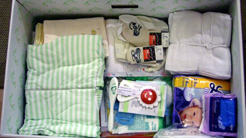 Hộp thai kỳ này là một món quà từ chính phủ Phần Lan gửi đến tất cả các bà mẹ tương lai, bao gồm quần áo, túi ngủ, sữa tắm, tã lót, mũ, găng tay, núm vú giả, mũ tắm, khăn tắm, kéo cắt móng tay, lược, bản chải đánh răng, nhiệt kế tắm, kem tã, khăn mặt, sách ảnh,… ![]() Hộp quà thai kỳ khá to, dày và đẹp, ở dưới lại được lót đệm dày nên nhiều bà mẹ Phần Lan đã tận dụng chiếc hộp làm nôi |