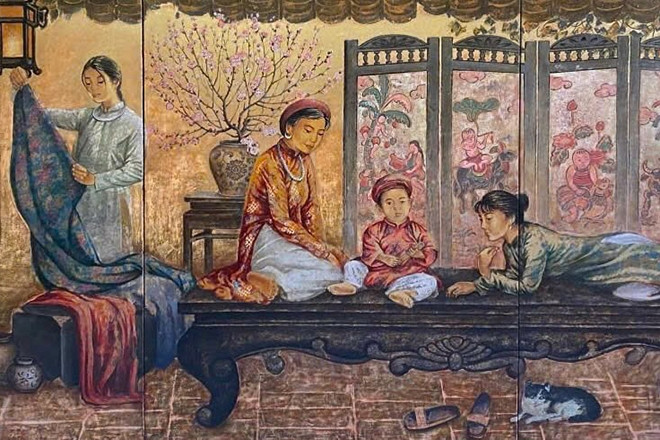 Thiếu nữ quyến rũ, văn hóa Bắc Bộ được tái hiện qua tranh sơn mài
