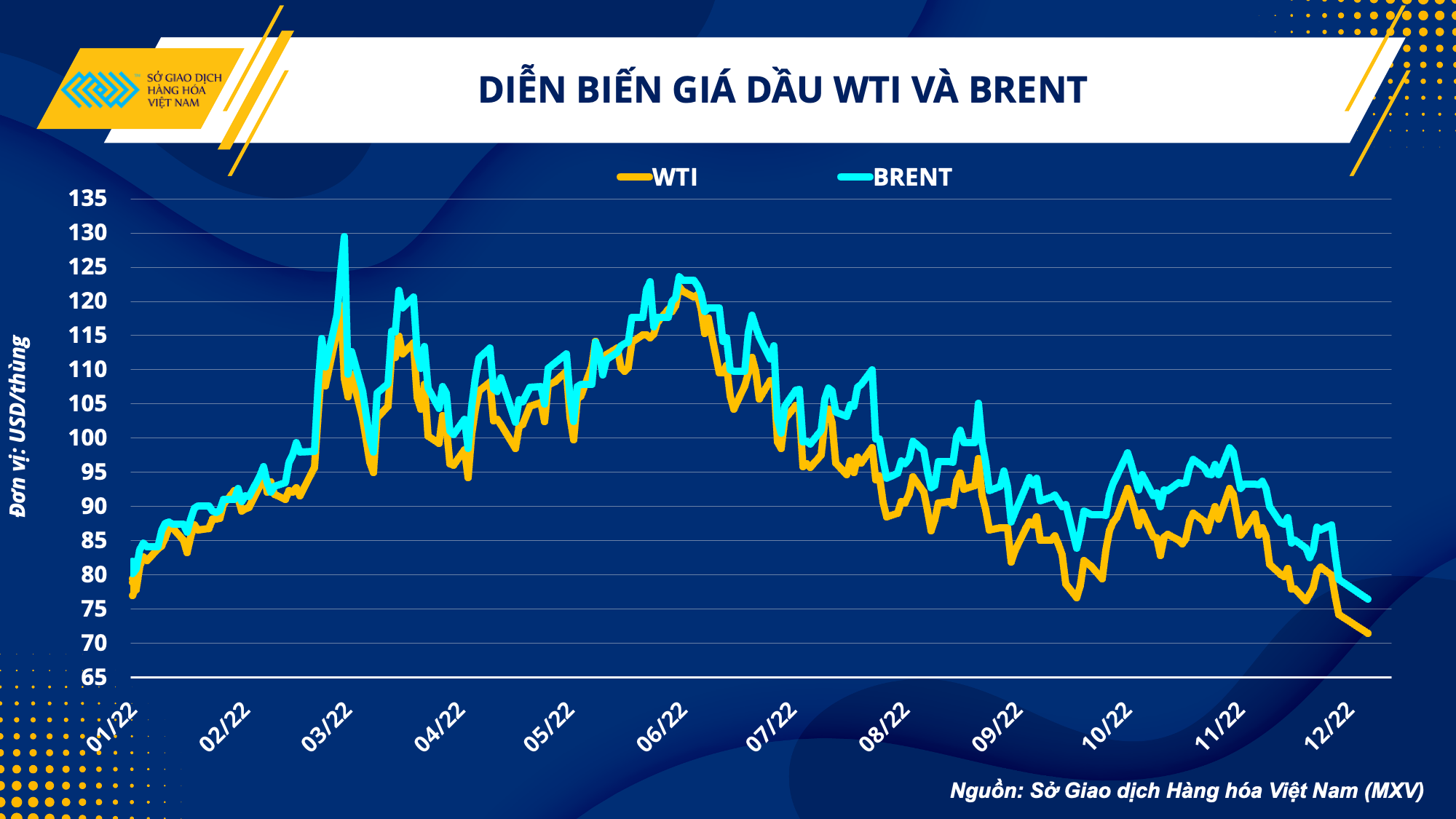 6 tháng cuối năm 2022 đánh dấu một giai đoạn khó khăn với thị trường dầu thô, khi giá luôn chịu sức ép và đã có lúc giảm về mức thấp nhất trong vòng một năm. Kết thúc phiên 13/12, giá dầu thô WTI tăng hơn 3%, lên mức 75,39 USD/thùng, giá dầu Brent cũng đã lấy lại cột mốc 80 USD/thùng.
