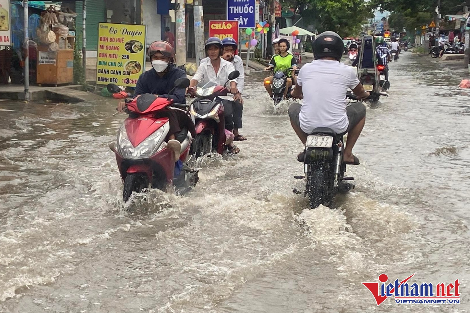 Mặc dù trời không mưa nhưng tuyến đường Lê Văn Lương (huyện Nhà Bè) vẫn xảy ra ngập nặng kèo dài khoảng 4km. Nhiều đoạn, nước ngập sâu 0,5m khiến việc đi lại người dân gặp khó khăn.